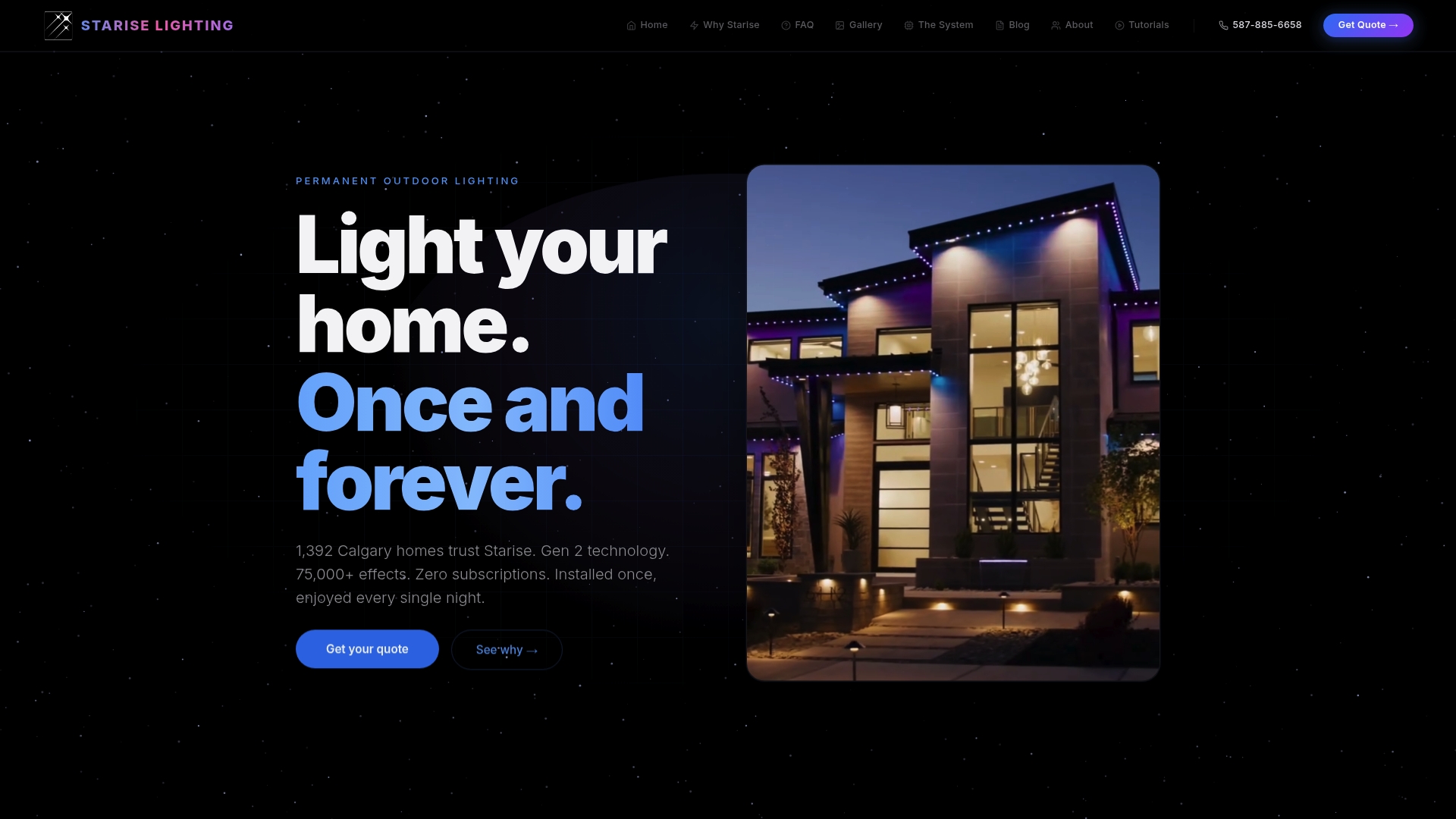 Starise specialises in permanent lighting solutions tailored to Calgary's unique climate and architectural styles. Their Gen 2 24V LED systems offer extensive customisation through intuitive app control, allowing homeowners to create any ambiance from elegant architectural accent to festive holiday displays. Weatherproof construction withstands harsh winters whilst maintaining visual appeal year-round. Comprehensive system details and installation tutorials demonstrate the quality and versatility distinguishing professional permanent installations from temporary alternatives.