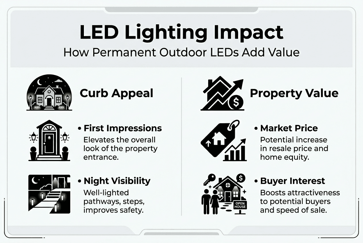 Imagine transforming your Calgary home's exterior into a stunning nighttime showcase whilst simultaneously increasing property value by up to 20%. Permanent outdoor LED lighting delivers far more than simple illumination. It creates architectural drama, enhances security by eliminating dark corners where intruders hide, and provides year-round visual appeal without the hassle of seasonal installations. For Calgary homeowners facing harsh winters and seeking low-maintenance solutions, permanent LED systems offer durability, energy efficiency, and customisable designs that adapt to any occasion. This guide explores how strategic lighting choices boost curb appeal, protect your investment, and position your property as a neighbourhood standout.