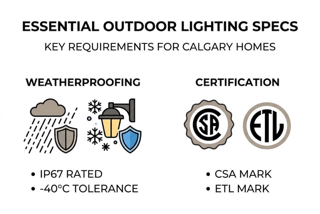 - Calgary outdoor LED lighting must have IP67/IP68 ratings and CSA or ETL certification for harsh winters.