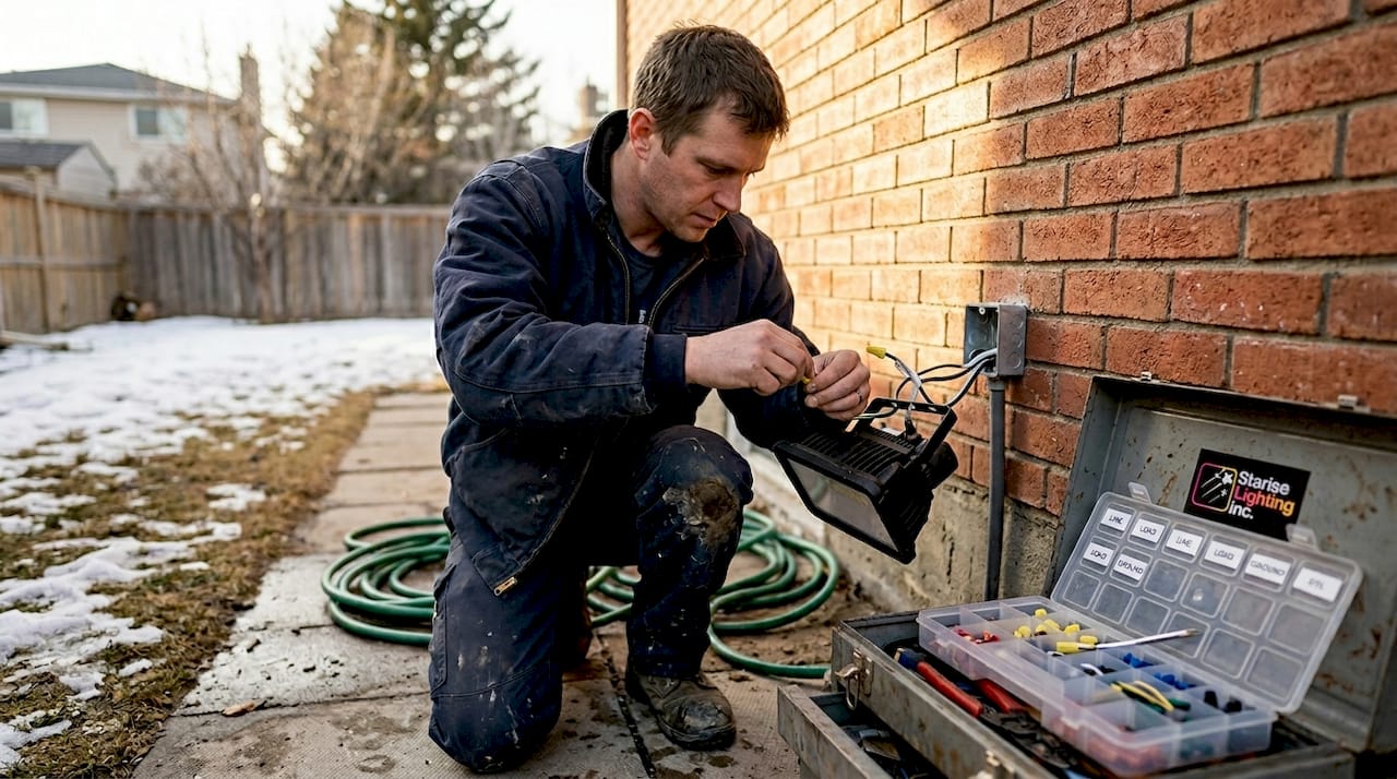 Important: Calgary winters create unique hazards. Ice on ladders and frozen ground can make even simple installations risky. Review this Calgary winter lighting resource before working in cold conditions.