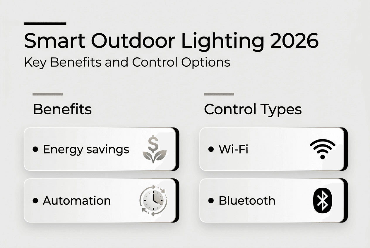 | Remote control access | Smart lighting apps enable you to manage outdoor lights from anywhere using Wi-Fi connectivity. |